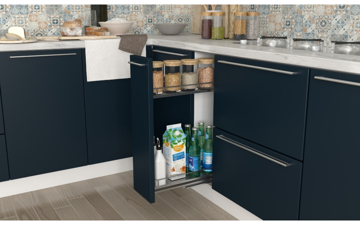 наличие больших выдвижных ящиков и карго Rejs, подъемных механизмов Blum и LED подсветка, добавят вам комфорта в процессе приготовления пищи.