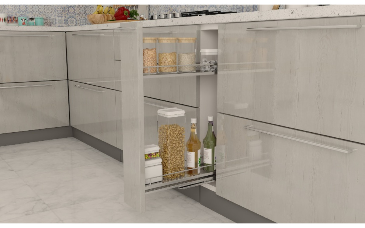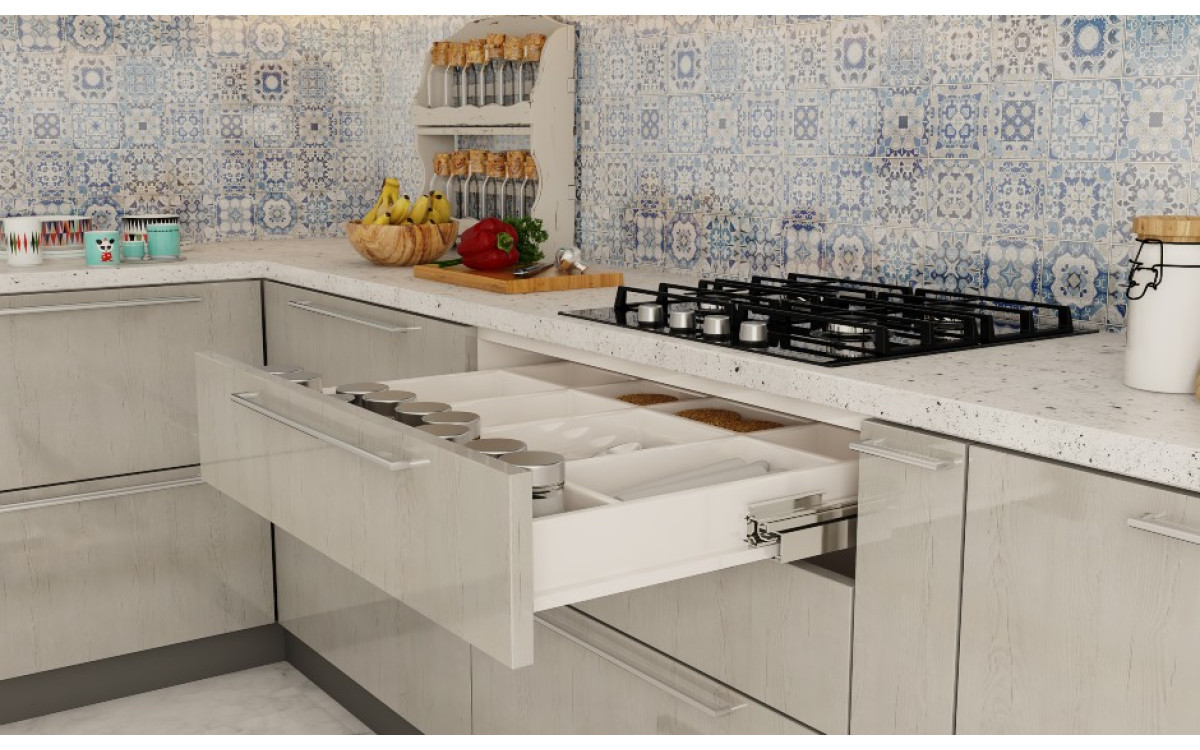 Этот угловой кухонный гарнитур, с глянцевыми фасадами, столешницей из искусственного камня и интегрированной LED подсветкой, воплощающий в себя стиль большого города, ультрамоден и оригинален в своем лаконичном изяществе. Четкие геометрические формы и симметричные линии, открытые полки из фасадного материала, наличие подъемных механизмов и выдвижных карго и полное отсутствие дополнительного декора создают аскетичный образ, и добавляют особого магнетизма вашему дому. Яркая индивидуальность и оригинальность этой кухни это сочетание абсолютно разных материалов и текстур с высококачественной фурнитурой, объединенных единой направляющей идеей.