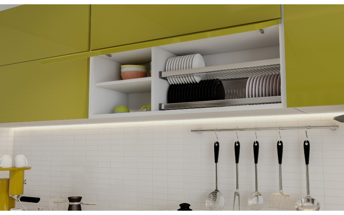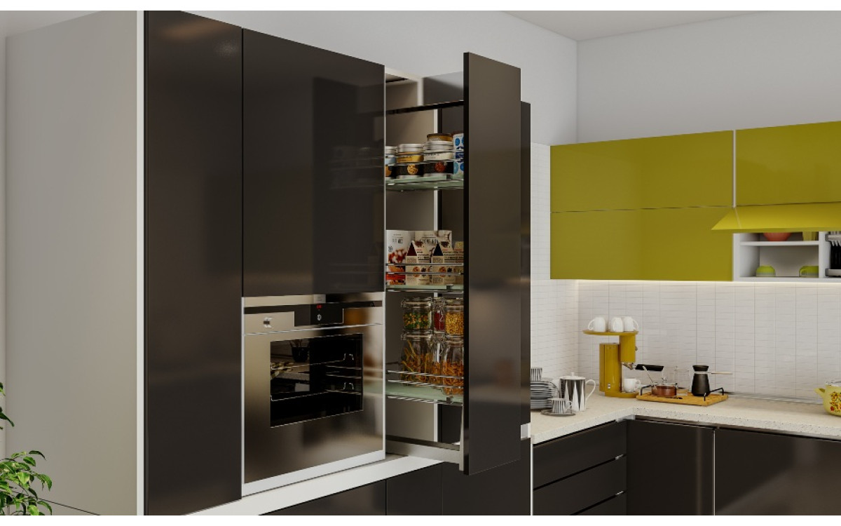 В даному випадку, це велика і зручна кухня з правильно розробленою системою зберігання. Безліч висувних ящиків, система максі карго, кутові системи зберігання та місткі пенали дають можливість зберігати всю необхідну начиння в закритих шафках і в ідеальному порядку.
