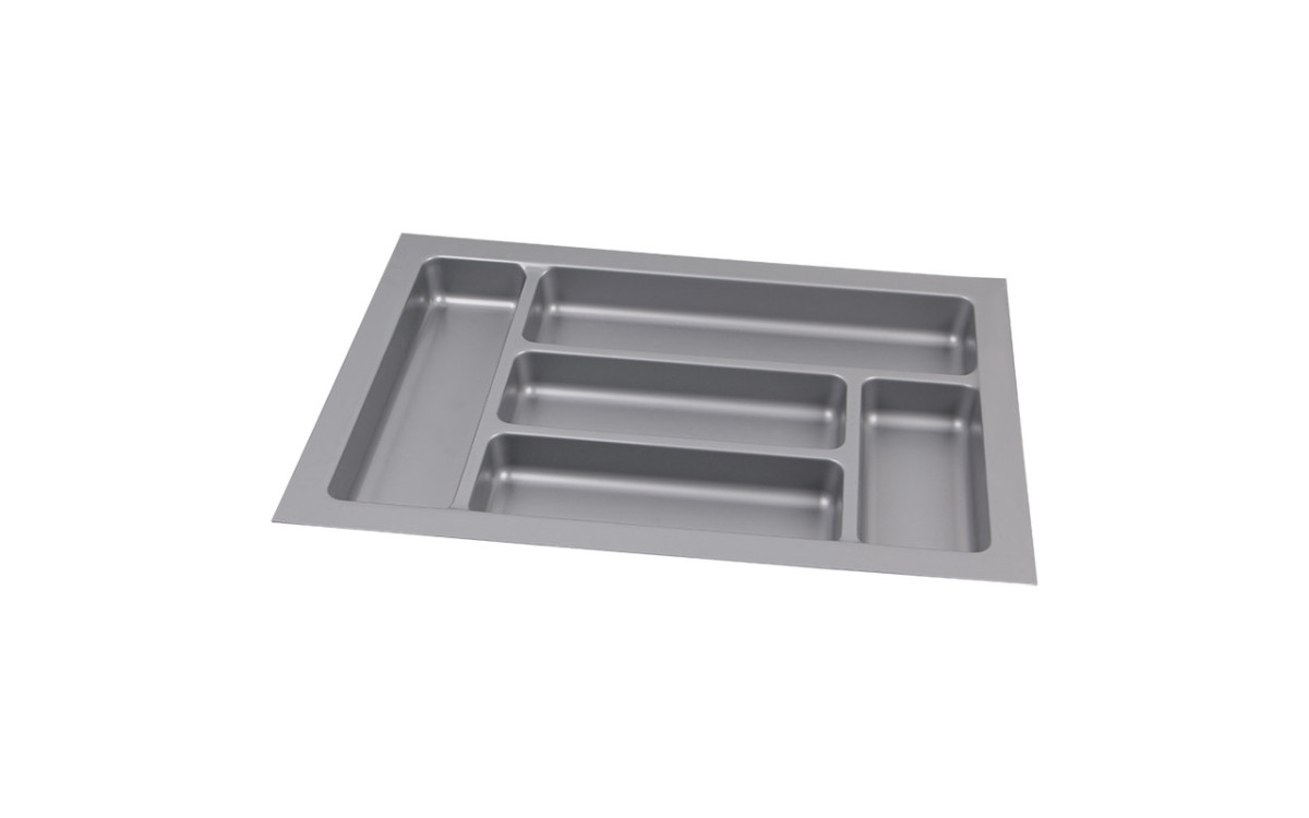 Лотки для столових приборів дозволяють максимально якісно використовувати внутрішній простір невисоких кухонних ящиків. По краях у вкладиша є поля, які при необхідності, можна легко обрізати і підігнати під розмір ящика.
