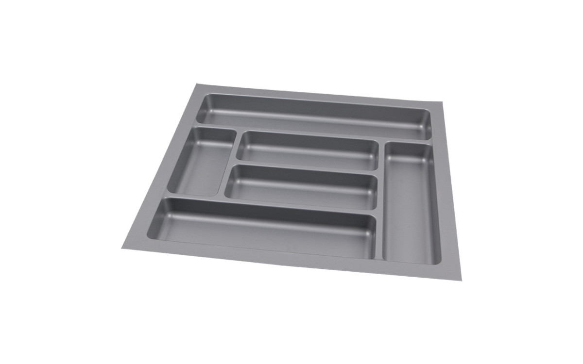 Лотки для столових приборів дозволяють максимально якісно використовувати внутрішній простір невисоких кухонних ящиків. По краях у вкладиша є поля, які при необхідності, можна легко обрізати і підігнати під розмір ящика.