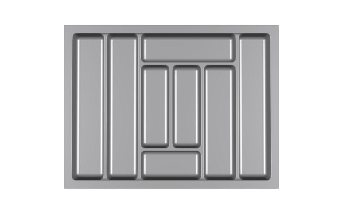 Лотки для столових приборів дозволяють максимально якісно використовувати внутрішній простір невисоких кухонних ящиків. По краях у вкладиша є поля, які при необхідності, можна легко обрізати і підігнати під розмір ящика.
