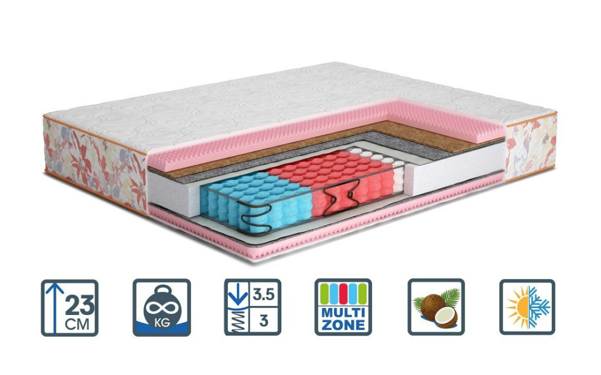 - Наповнення:Чохол - стрейч-жаккард глибокої прошивки Прошивка чохла - шерсть Oxigen Foam кокосова койра Termofiber 5 зонний пружинний блок Pocket Spring з посиленням двома рамками зі сталі Termofiber Oxigen Foam Прошивка чохла - бавовна Чохол - стрейч-жаккард глибокої прошивки