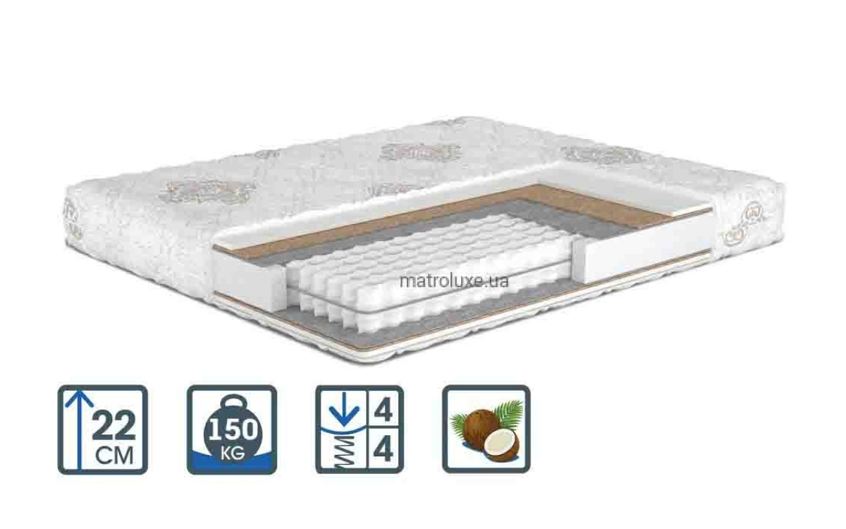 - Наповнення:Чохол знімний - стрейч-жаккард глибокої прошивки Air Foam - інноваційний матеріал кокосова койра Termofiber Посилений блок незалежних пружин Pocket Spring з металевою рамкою в двоспальних моделях Termofiber кокосова койра Air Foam - інноваційний матеріал Чохол знімний - стрейч-жаккард глибокої прошивки