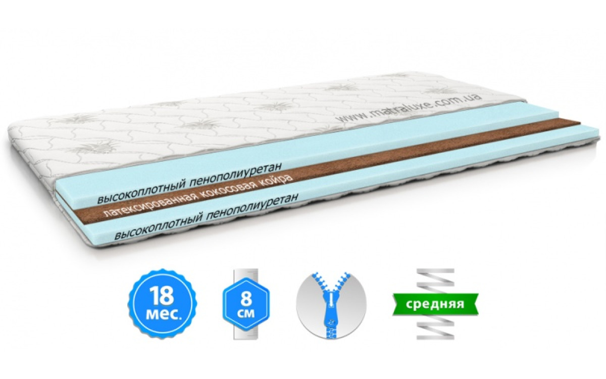 - Наповнення:Чохол - бавовна 100% пінополіуретан Латексована кокосова койра пінополіуретан Чохол - бавовна 100%