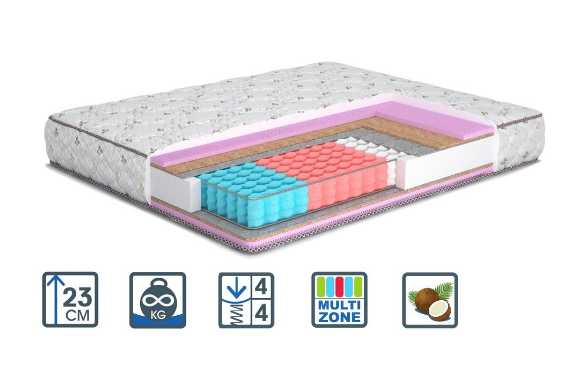 - Наповнення:Soft Plus Comfort Layer Coconut coir Organic Protection Ergonomic Spring System Organic Protection Coconut coir Comfort Layer