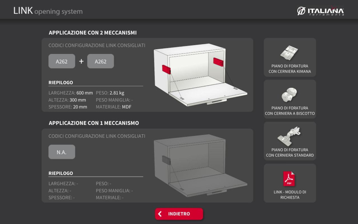 Ограничитель откидной двери самотормозящий Italiana Ferramenta LINK AL280 - служит для ограничения открытия фасада. Количество и тип используемого механизма подбирают с помощью приведенной таблицы.