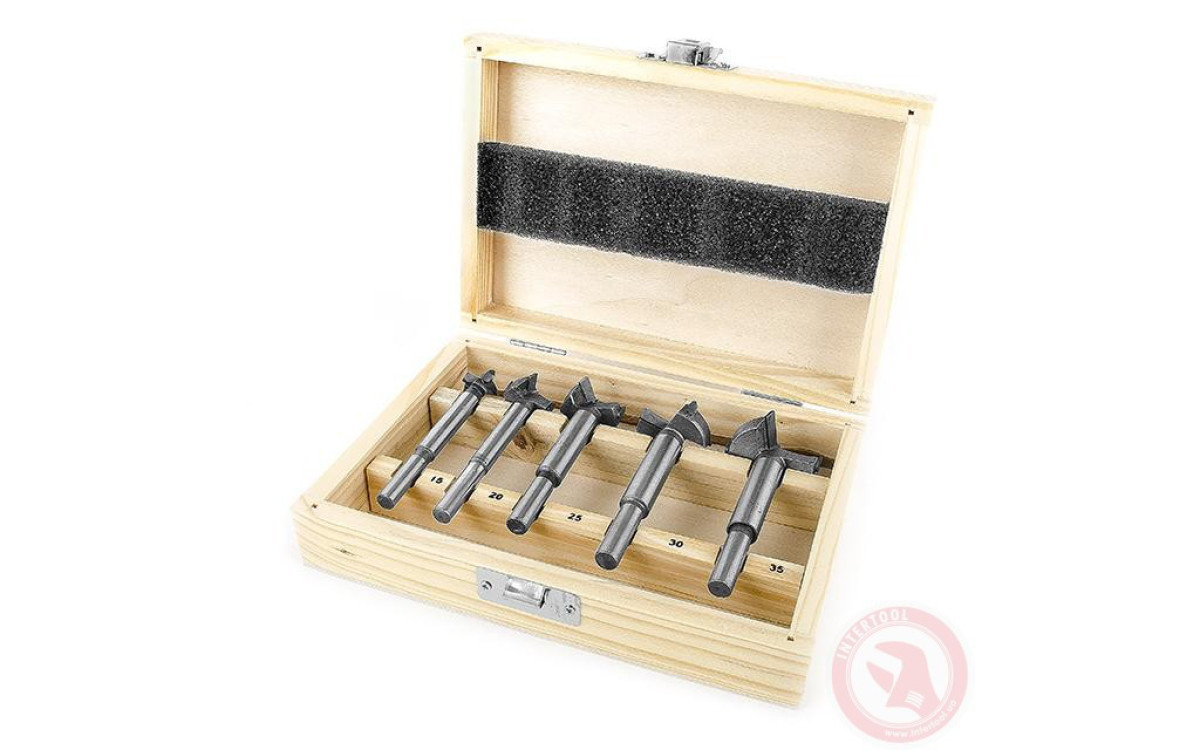 Набор фрез Форстнера, 5 шт. INTERTOOL HT-0074 занимает достойное место по соотношению цена-качество, т.к. сделано из хорошего материала и имеет невысокую цену.