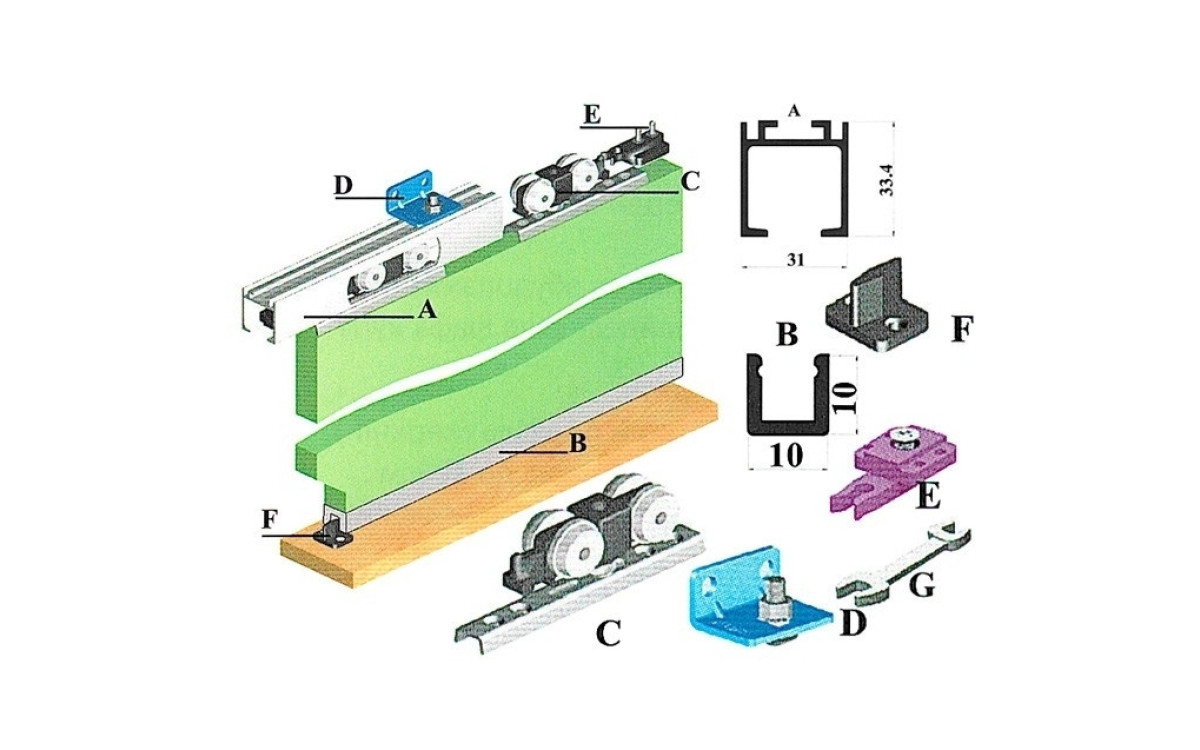 Теги: Направляючий профіль для Омега 60, ролики для розсувних дверей, фурнітура розсувних дверей, розсувні системи, Новатор
