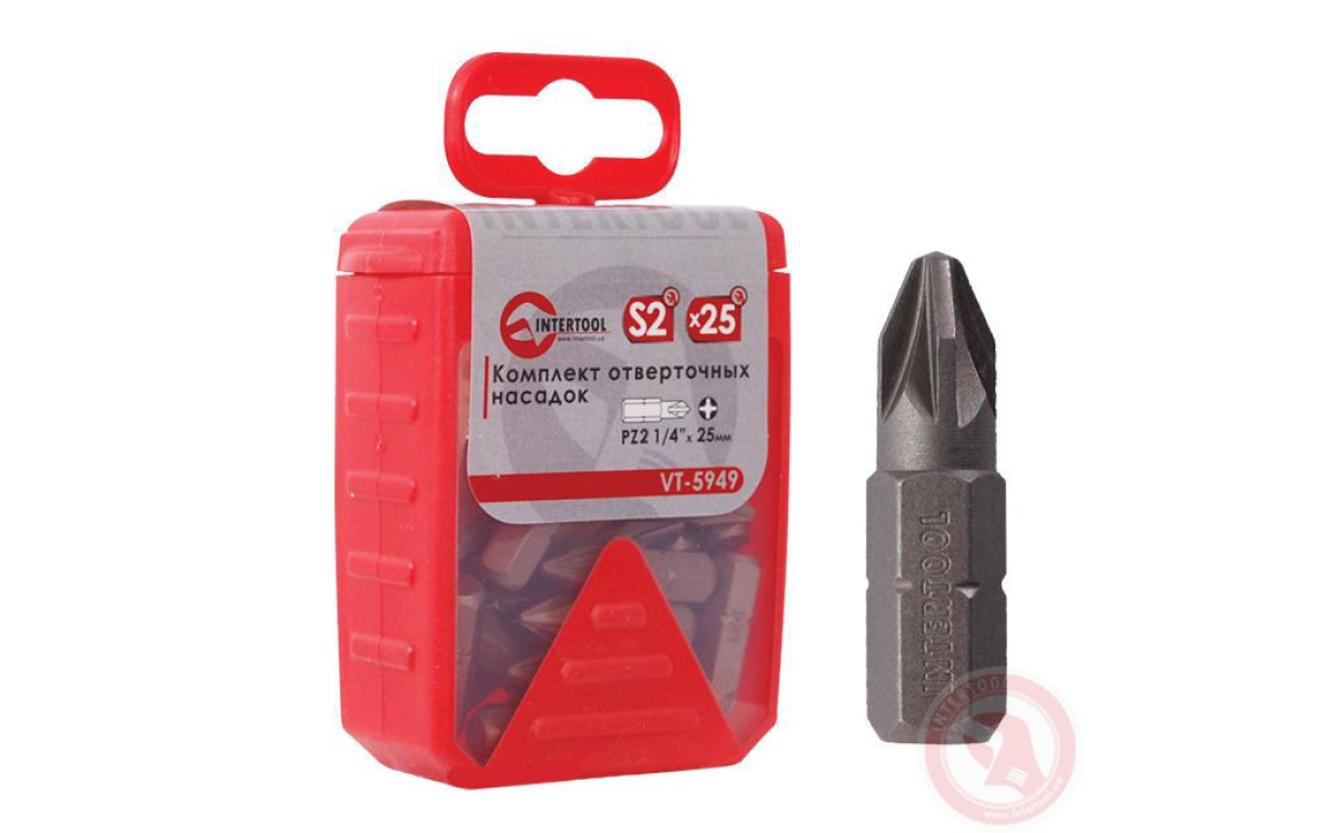 Отверточная насадка PZ2 1/4"x 25 мм INTERTOOL VT-5949 занимает достойное место по соотношению цена-качество, т.к. сделана из хорошего материала и имеет невысокую цену.
