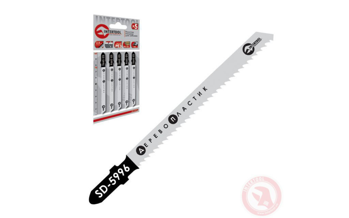 Полотно пильное для лобзика рабочая длина 75 мм, шаг зуба 2,5 мм для работы по дереву INTERTOOL SD-5996 занимает достойное место по соотношению цена-качество, т.к. сделано из хорошего материала и имеет невысокую цену.