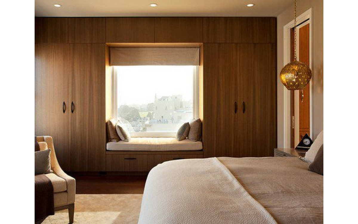 Оригінальний і багатофункціональний меблевий гарнітур, основою якого є дві місткі шафи з розстібними дверима, а також місце для відпочинку та релаксації. Такий проект дуже органічно впишеться в інтер'єр вашої спальні або вітальні. Крім неординарного зовнішнього вигляду, цей набір меблів дозволяє правильно організувати вашу систему зберігання та зручно розмістити всі ваші речі та спальні приладдя.