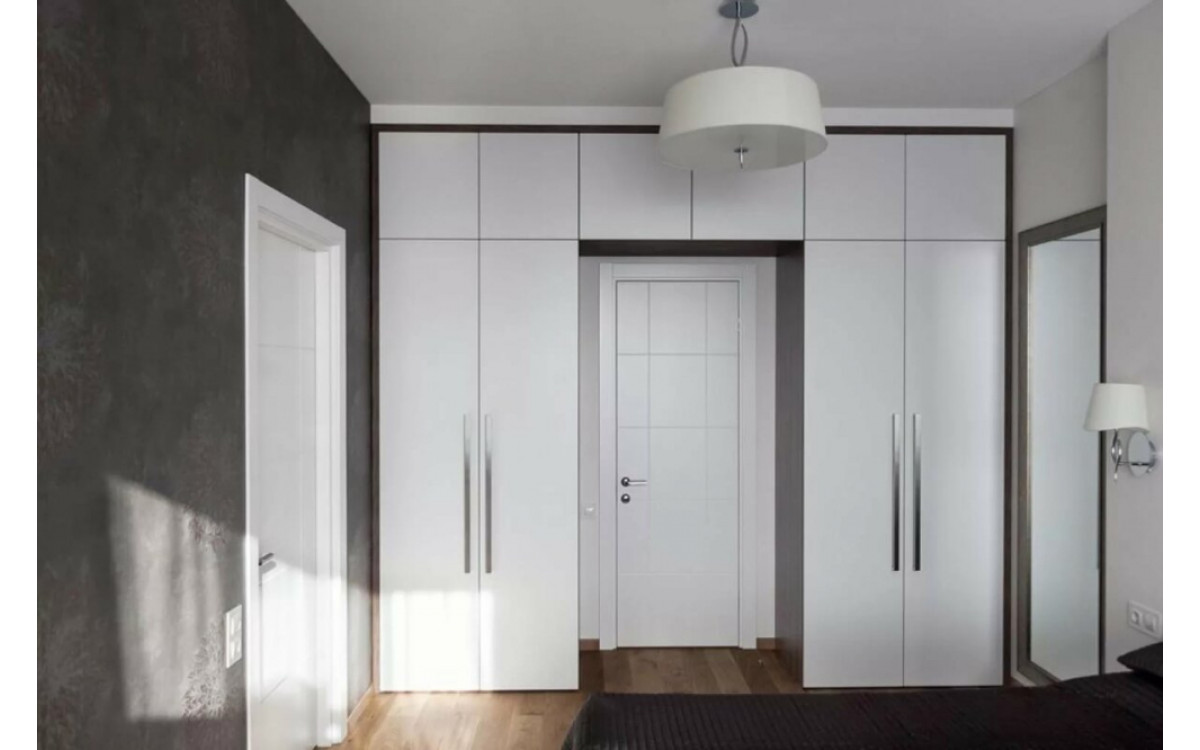 Дуже зручне і традиційне рішення для невеликої кімнати, це набір з двох шаф з дверцятами, з'єднаний антресолями, заощадить місце і дозволить правильно організувати систему зберігання ваших речей. Виготовлення меблів на замовлення дозволяє використовувати весь вільний простір стіни, включаючи місце над дверним отвором і створити внутрішнє наповнення з урахуванням особливостей вашого гардеробу.