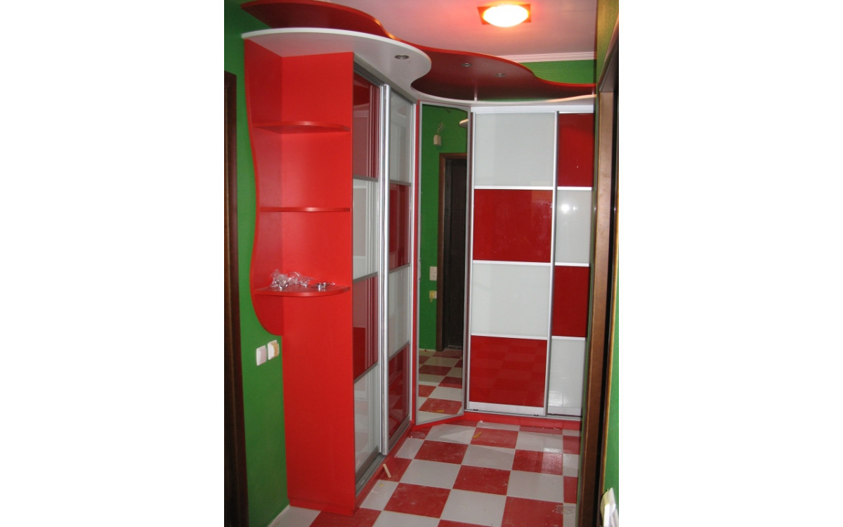 Яскрава кутова шафа купе «Red and White» для коридору або передпокою.