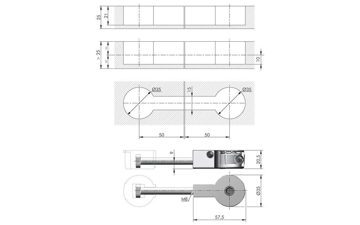 Стяжка для столешниц QUICK 35мм, L=100мм 2162104000 требует сверления отверстий диаметром 35мм в стягиваемых частях столешен. Использование стяжки для столешниц значительно упрощает сборку мебели, т.к. стягивание частей столешни, осуществляется в считанные секунды.