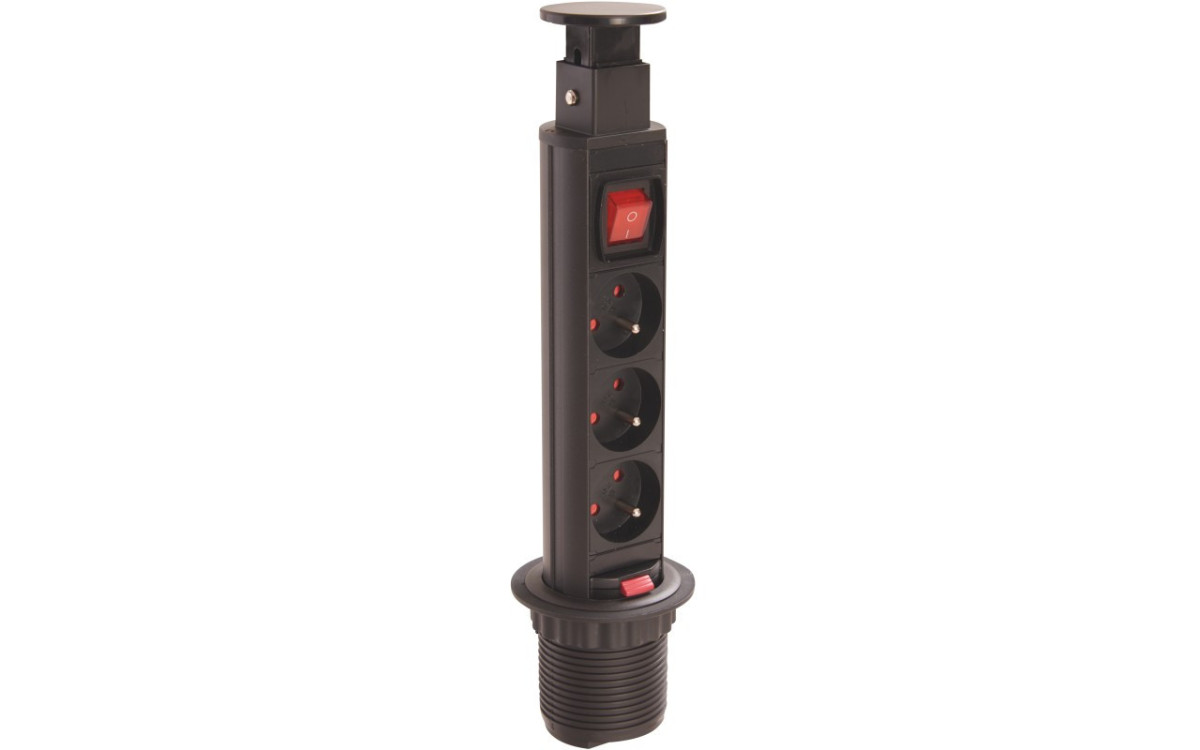 Подовжувач врізний для офісу d 60 Amix с заземленням на 3 розетки FRENCH с выключателем чорний допоможе позбутися від зайвих проводів на робочому місці. Подовжувач встановлюється в стільницю і повністю топиться в неї, коли не використовується. Як тільки виникає необхідність підключити який-небудь електроприлад, вбудований розетковий блок витягується назовні легким рухом і дає можливість підключити до мережі ваш гаджет. За своєю суттю - це повноцінний багатофункціональний пристрій.