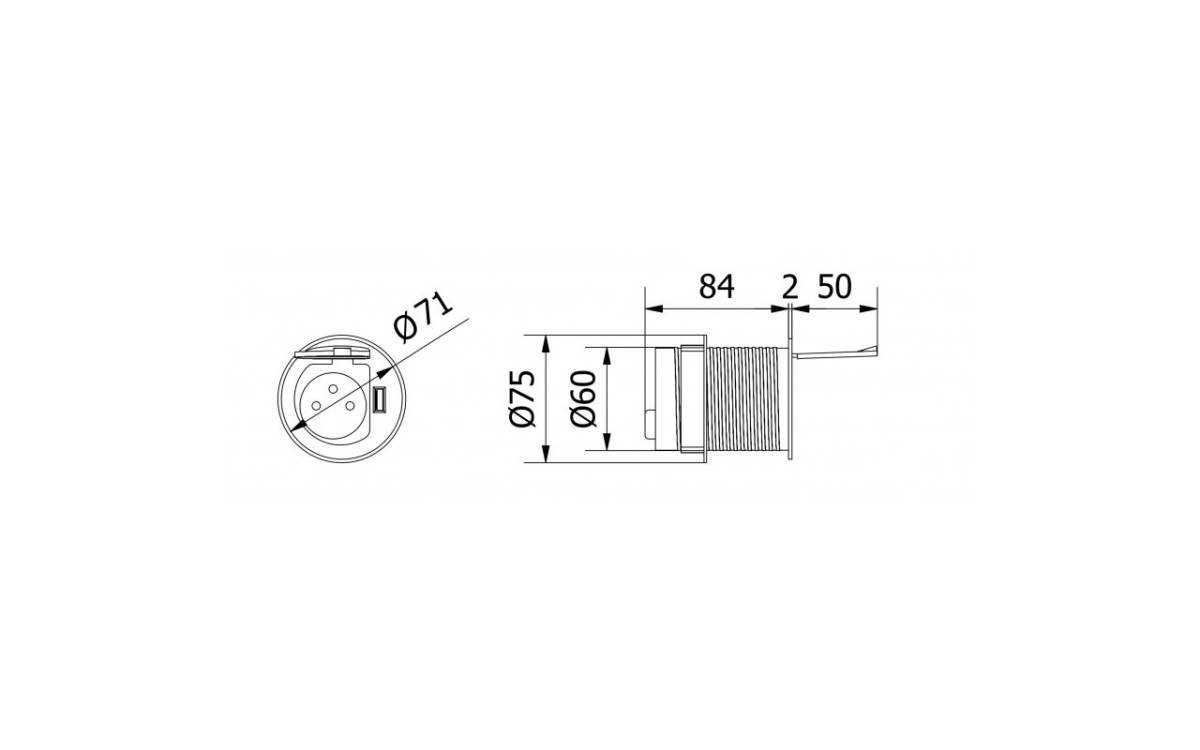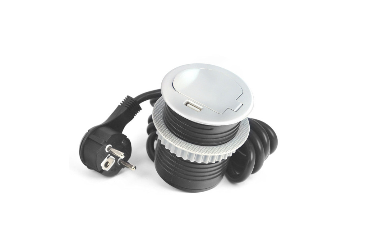 Подовжувач вбудований для офісу на 1 розетку із заземленням SCHUKO, зарядка USB 5V 2A, сірий AE-BPW1S1UCH-53 створює додатковий комфорт на робочому місці, звільняючи від проводів на стільниці.