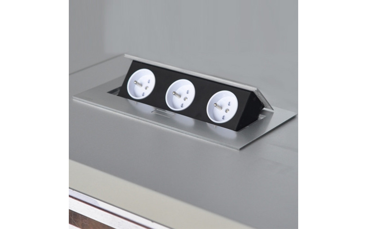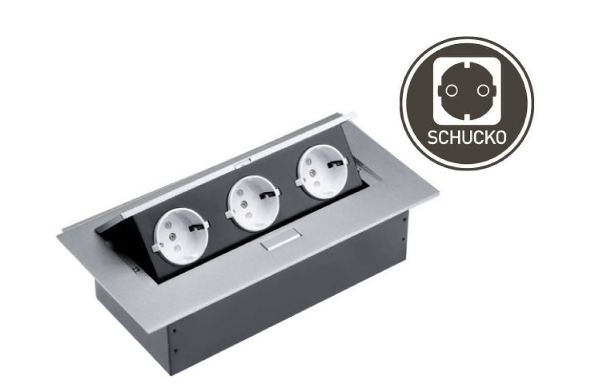 Розетка вбудована для офісу на 3 розетки SCHUCKO с заземлением алюміній AE-PB03GU-53 допоможе позбутися від зайвих проводів на робочому місці. Подовжувач встановлюється в стільницю і повністю топиться в неї, коли не використовується. Як тільки виникає необхідність підключити який-небудь електроприлад, вбудований розетковий блок витягується назовні легким рухом і дає можливість підключити до мережі ваш гаджет. За своєю суттю - це повноцінне багатофункціональний пристрій.