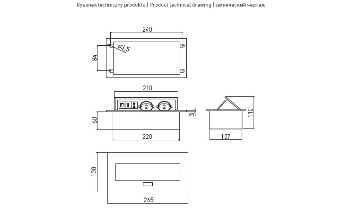- Монтажний отвір, мм:110х220