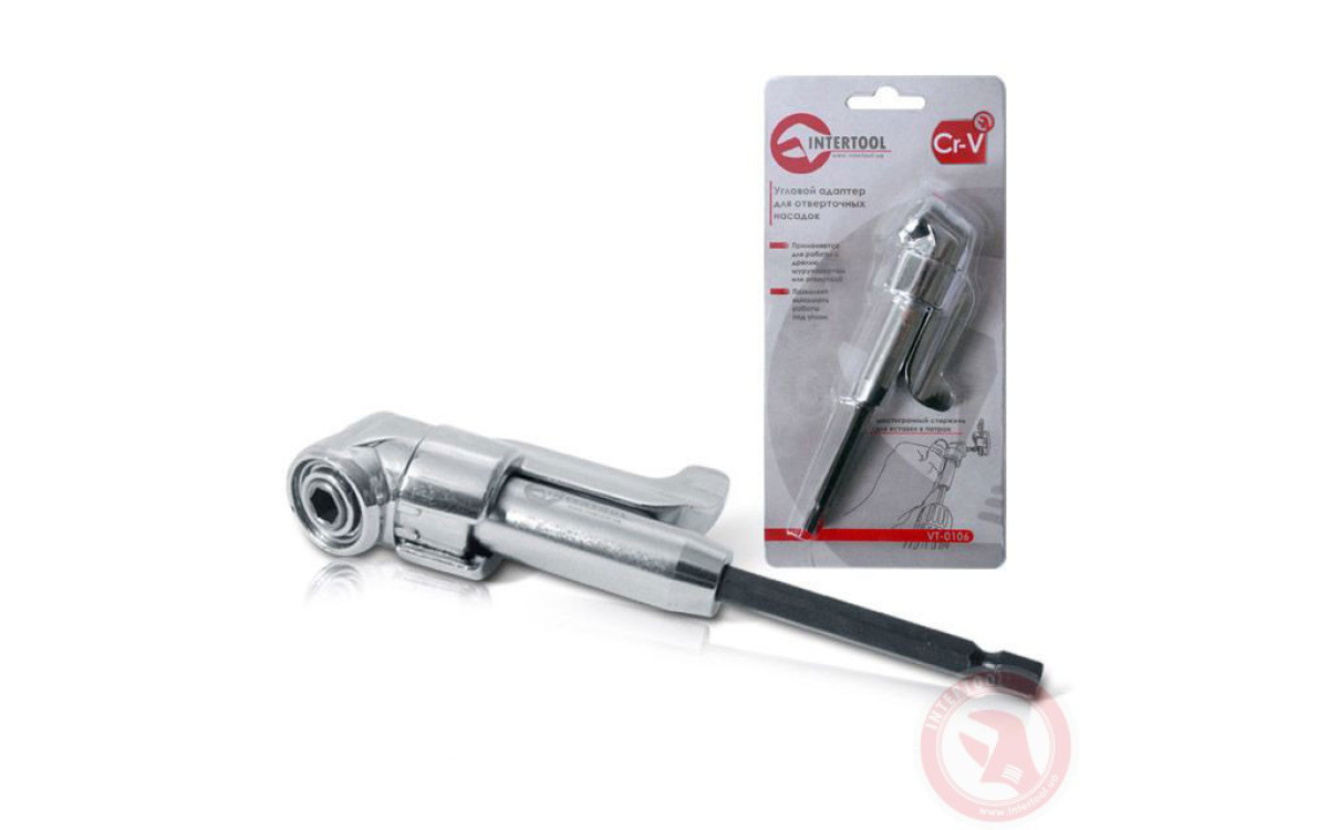 Угловой адаптер для отверточных насадок 1/4" Cr-V INTERTOOL VT-0106 занимает достойное место по соотношению цена-качество, т.к. сделан из хорошего материала и имеет невысокую цену.