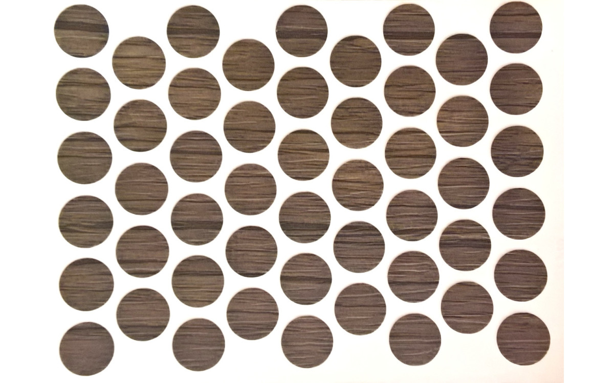Самоклеющаяся заглушка на конформат дуб шамони темный 0282 повсеместно применяют для заклеивания шляпки конфирмата или самореза, а также, при необходимости, различных отверстий или дефектов на мебели.