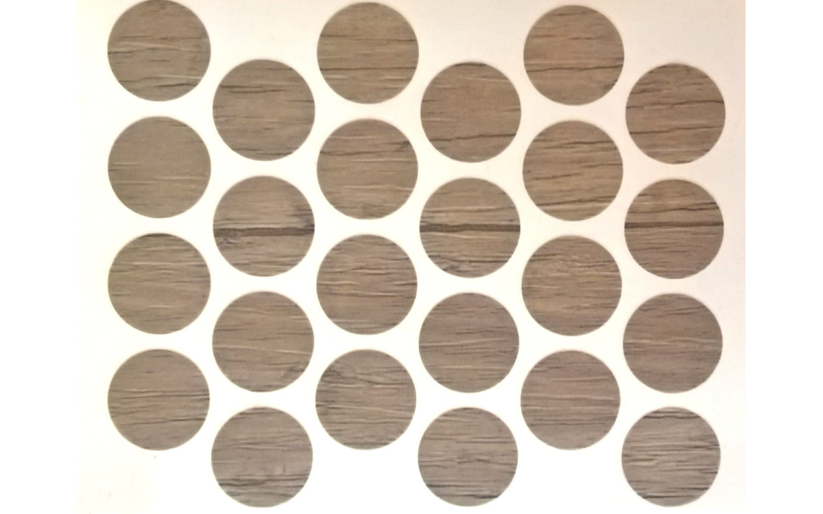 Самоклеющаяся заглушка на минификс дуб лимберт 0285 повсеместно применяют для заклеивания крепежа минификса или самореза, а также, при необходимости, различных отверстий или дефектов на мебели.
