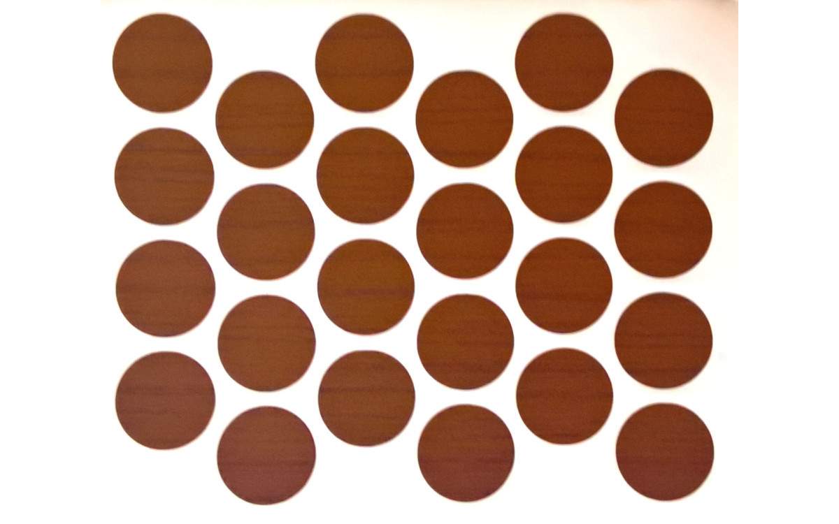 Самоклеющаяся заглушка на минификс груша темная 7059 повсеместно применяют для заклеивания крепежа минификса или самореза, а также, при необходимости, различных отверстий или дефектов на мебели.